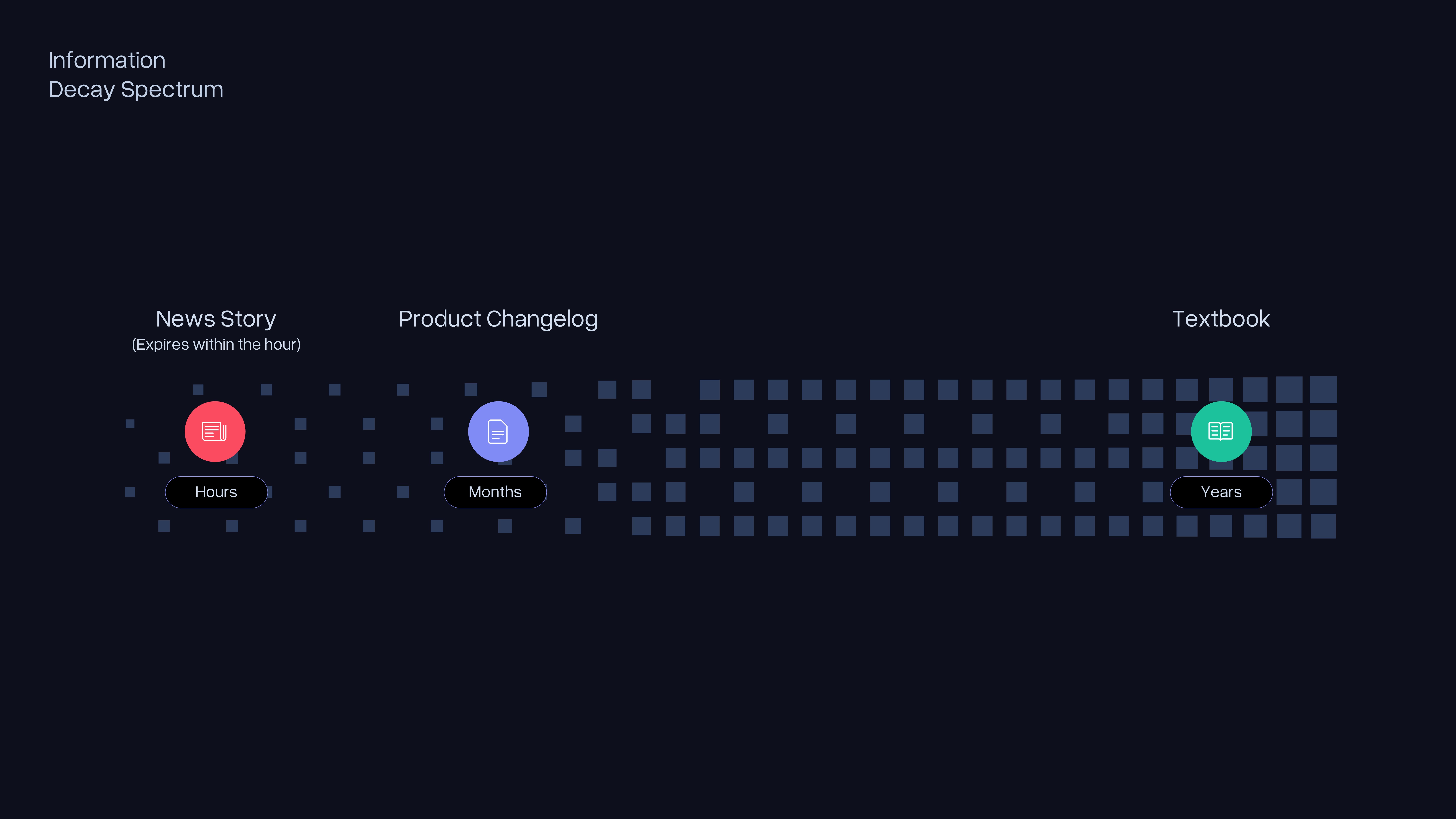 A textbook on thermodynamics is as useful today as it was five years ago. A product changelog from last quarter is stale but not useless. A news story about a central bank decision, a festival lineup change, a geopolitical development, or a sold-out show that just added tickets can be outdated within the hour it was published.